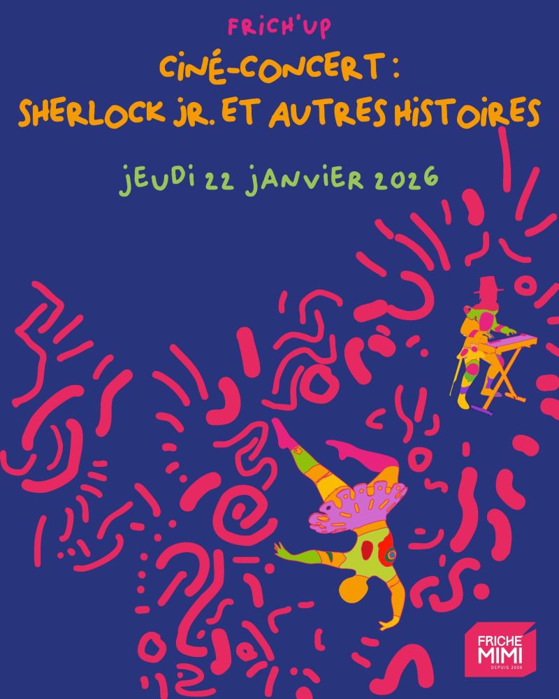 Pour ce premier Frich'up 2026, La Friche Mimi vous propose de plonger dans l'univers cinématographique de Buster Keaton (Sherlock Jr. et The Playhouse) en vous laissant guider par Vincent Boisseau et six autres musiciens de la scène jazz d'Occitanie, reprenant les musiques composées par Bruno Regnier spécifiquement pour les films de Buster Keaton. Une histoire sans paroles et une musique sur le fil du jazz qui transcende l'image et redonne au cinéma sa dimension de spectacle vivant.